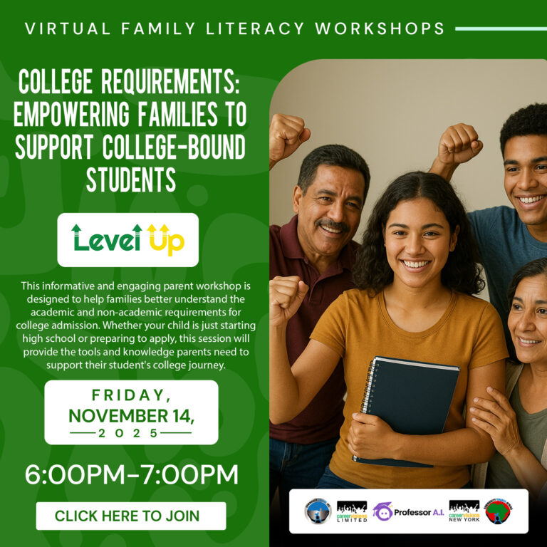This informative and engaging parent workshop is designed to help families better understand the academic and non-academic requirements for college admission. Whether your child is just starting high school or preparing to apply, this session will provide the tools and knowledge parents need to support their student’s college journey.