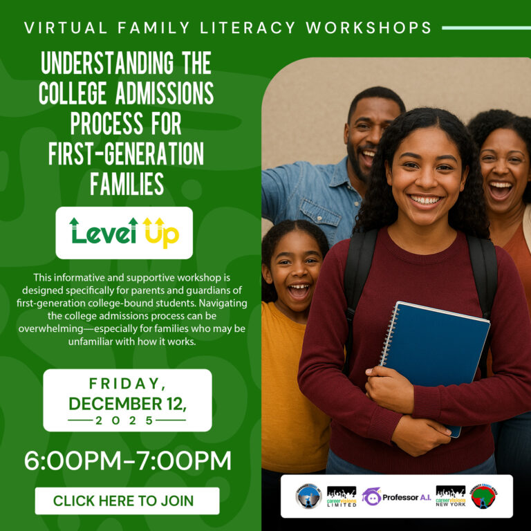 This informative and supportive workshop is designed specifically for parents and guardians of first-generation college-bound students. Navigating the college admissions process can be overwhelming—especially for families who may be unfamiliar with how it works. Our goal is to demystify the process and empower families with the knowledge and tools needed to support their students on the journey to higher education.