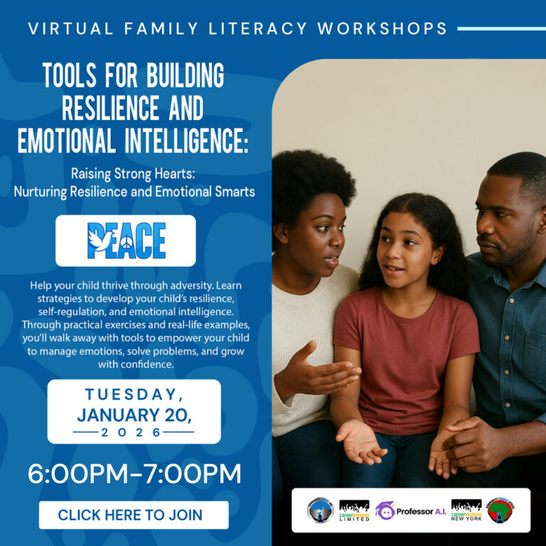 This workshop equips parents with the tools to have meaningful conversations with their children about healthy relationships, covering topics such as respect, communication, and boundaries. It promotes emotional intelligence and aligns with the Community Change Pedagogy’s emphasis on social-emotional learning and well-being.